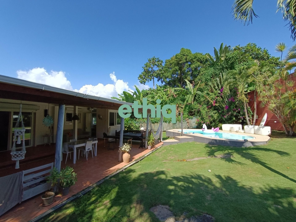 À vendre à Petit-Bourg, charmante maison 4 pièces de 99 m², édifiée sur un terrain de 997 m² avec piscine et terrasse.