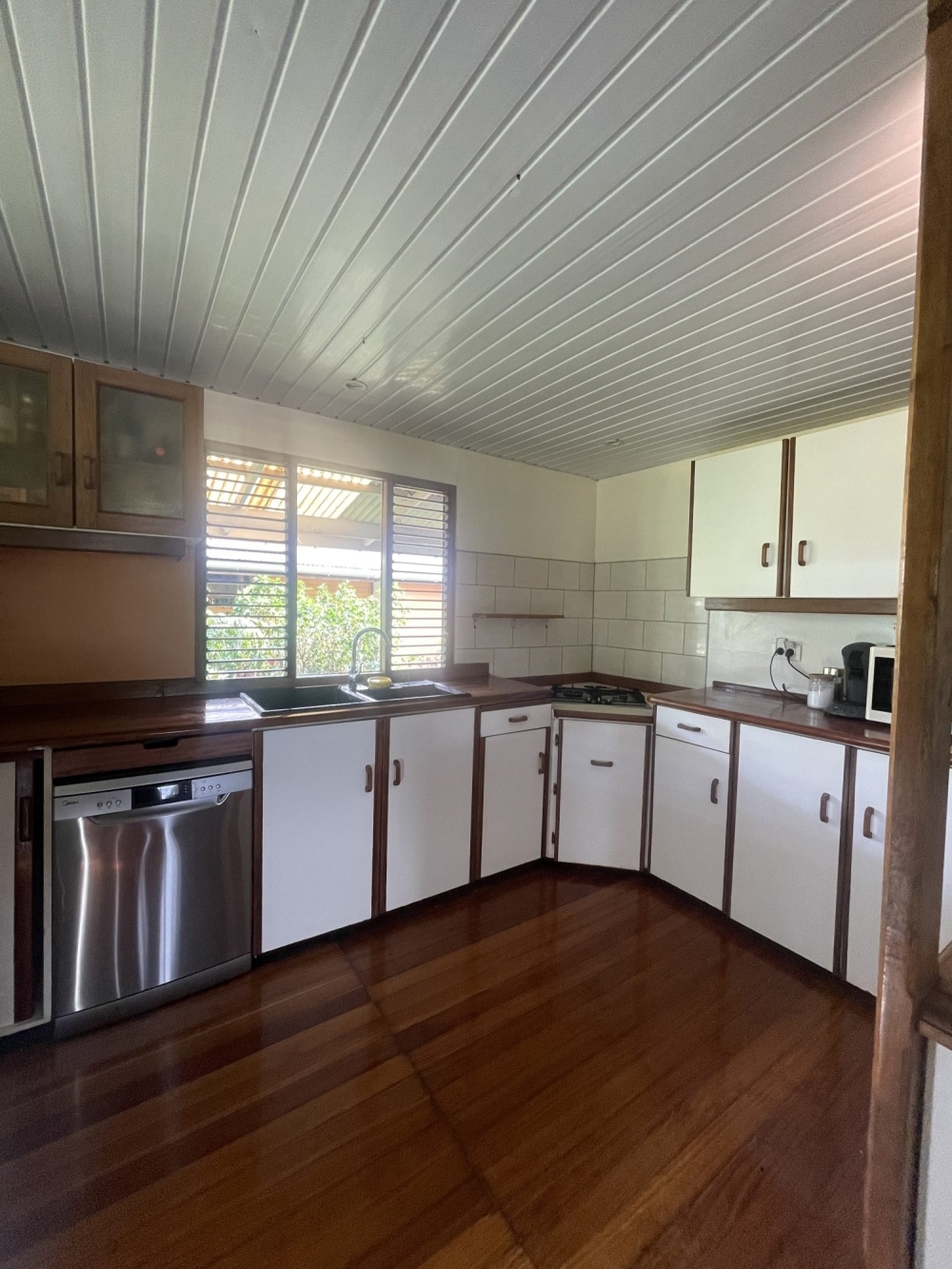 Venez découvrir, en plein centre de Taravao, nichée dans un coin de verdure, cette maison aux beaux volumes avec studio indépendant.