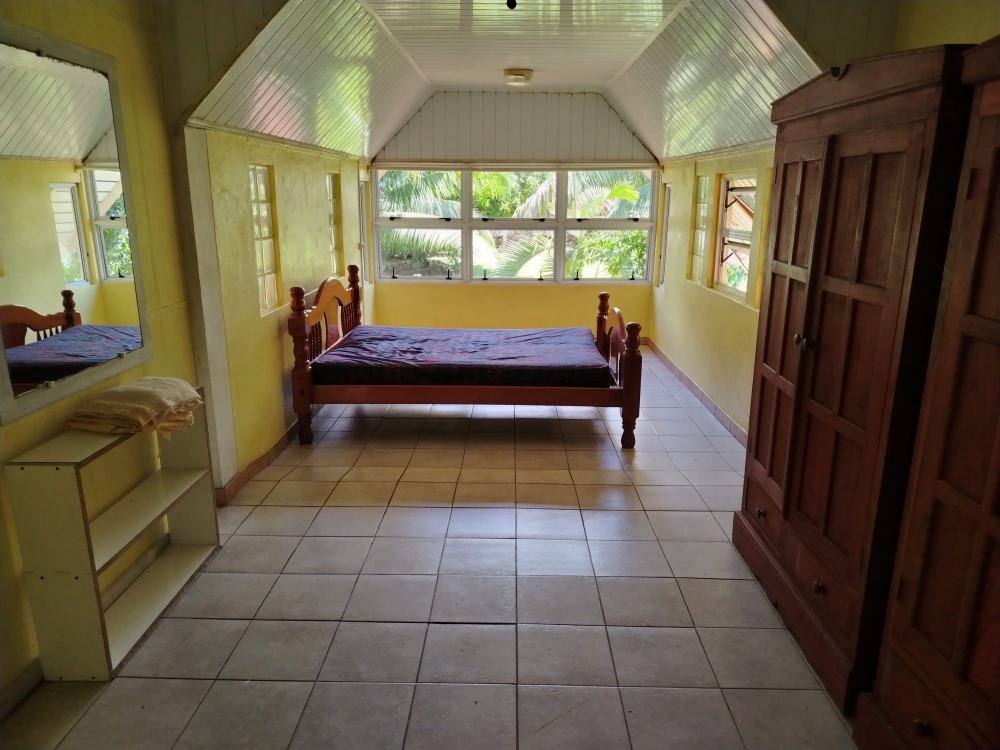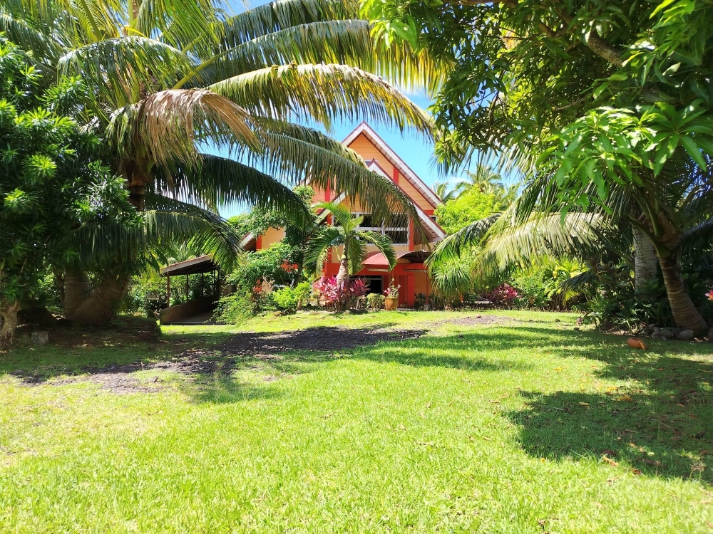 Située sur un terrain verdoyant et joliment arboré de ?.??? ?², cette charmante maison typiquement polynésienne, construite sur 2 niveaux, offre une ??????? ????????? ?? ??? ?².
