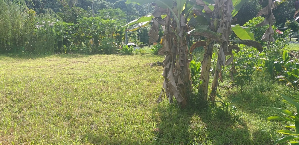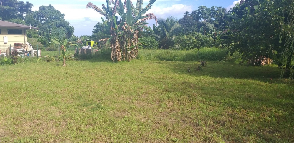 Vend a Teahupoo, beau terrain plat, arbore, quartier calme.