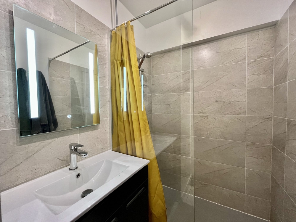 Bel appartement F3, entièrement refait à neuf, composé d'une entrée avec dégagement et placard, une cuisine équipée ouverte sur un grand salon climatisé, deux chambres avec placard, une salle de bain, un WC, une terrasse avec buanderie.