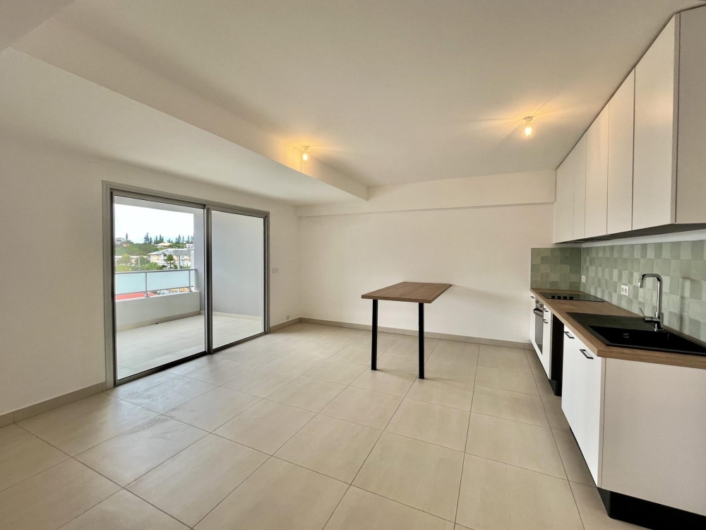 Appartement F2 NEUF, d'une superficie d'environ 40m², idéalement situé au 3ème étage d'une résidence avec ascenseur à Motor Pool. L'appartement se compose comme suit : une cuisine équipée ouverte sur le séjour, une chambre climatisée avec placards et salle d'eau attenante, un WC séparé, une terrasse d'environ 12m² avec un espace buanderie. Deux places de parking complètent le bien.
