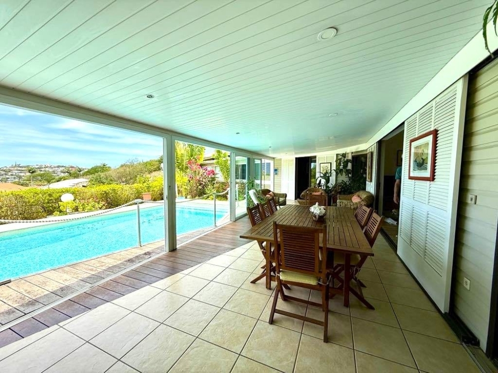 Sur les hauteurs de la Vallée des Colons, dans un environnement calme et résidentiel, Villa F4 en excellent état, comprenant : cuisine équipée , vaste séjour donnant sur la terrasse avec vue mer. Trois chambres dont une suite parentale, un grand carport, piscine. Chauffe eau solaire, Panneaux photovoltaïques. Pas de travaux à prévoir