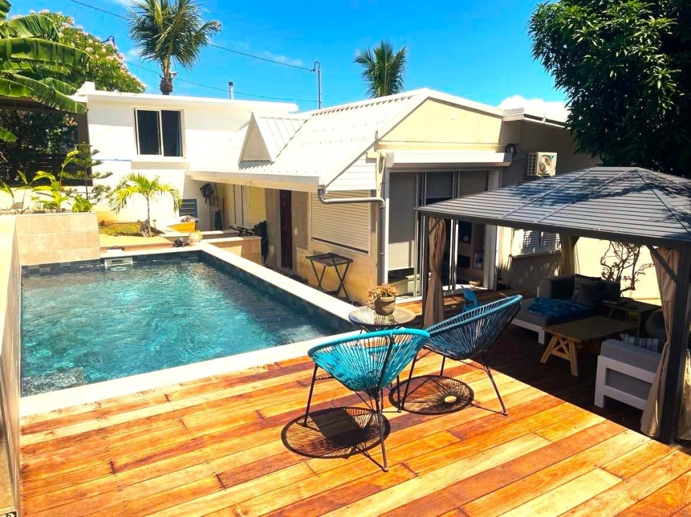 Idéalement située, dans une rue calme de l'Anse Vata, Villa F4 entièrement rénovée de 115m², avec piscine 6x3, sur un terrain clôturé de 4a56 comprenant :