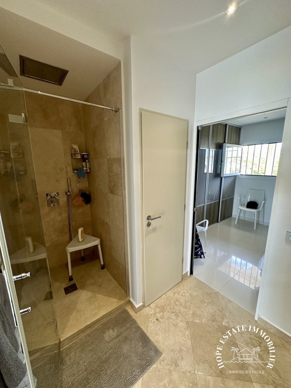 -Chambre spacieuse avec grand dressing et salle d'eau attenante de qualité.