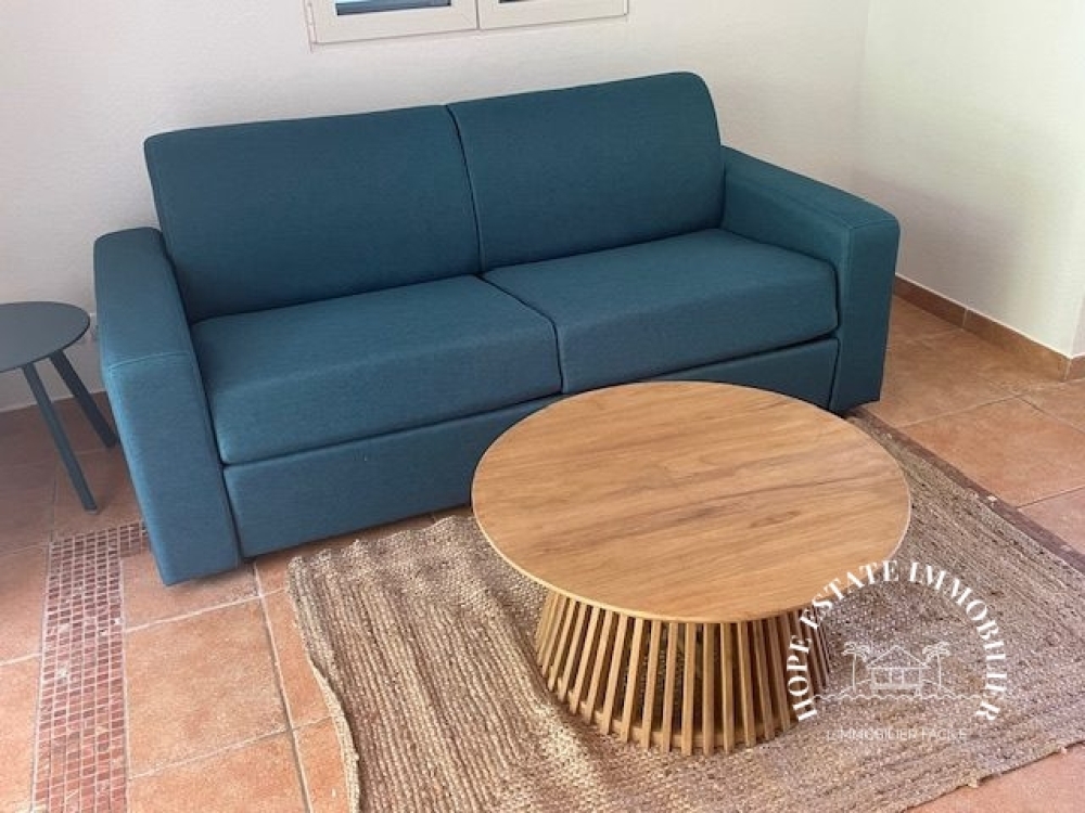 Bel appartement T2, situé à ANSE MARCEL, dans une résidence recherché, avec piscine commune, et beaux jardins entretenus- ce T2 saura séduire les plus exigeants- implantation très calme, espace extérieur avec terrasse couverte, et jardinet, belle vue dégagée sur les jardins- salon séjour avec cuisine américaine, wc visiteur une buanderie- à l'étage grande et belle salle d'eau, avec wc- une chambre complète cet ensemble