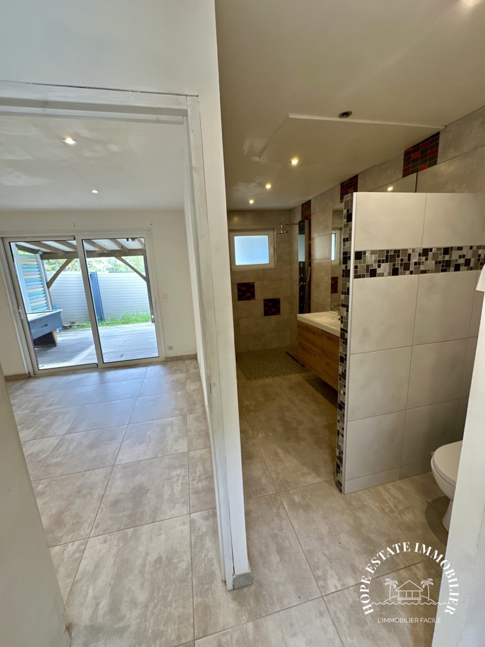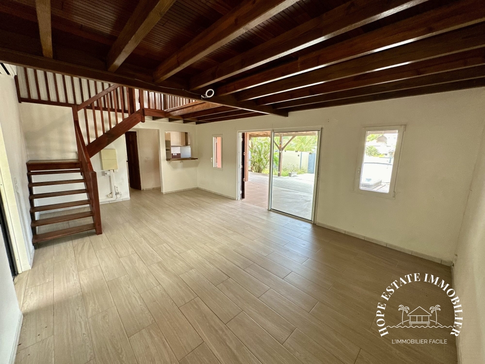 Elle se compose d'une spacieuse pièce de vie lumineuse avec une cuisine aménagée et entièrement équipée, d'une salle d'eau moderne et d'une élégante master room. À l'étage, une mezzanine pouvant servir de chambre d'appoint ainsi qu'une grande chambre avec placards complètent ce bien