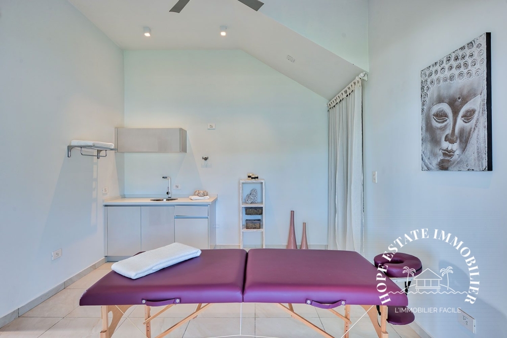 Un espace bien-être , comprenant une salle de sport privée et un spa, situé sous l'appartement.