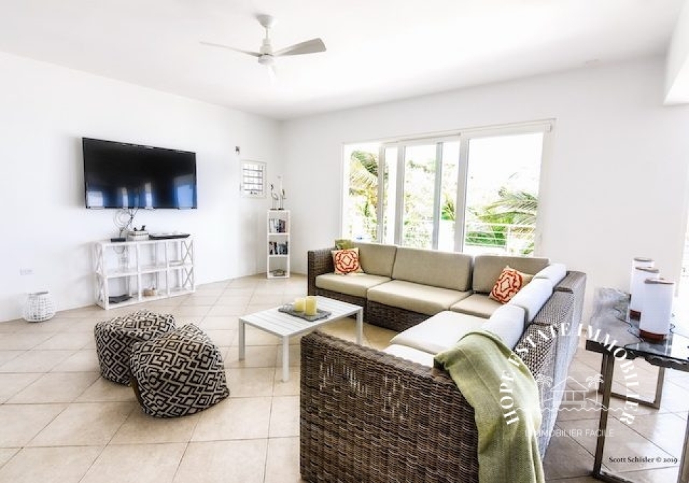Conçue pour combiner confort moderne et charme tropical, la villa séduit par son architecture ouverte et fluide. Dès l'entrée, un élégant hall d'accueil vous invite à descendre quelques marches vers un espace de vie principal lumineux et convivial. Ce dernier se compose d'un vaste salon, d'une cuisine sur mesure ultramoderne, d'une salle à manger spacieuse, d'un bar élégant et d'une salle de bain complète. Chaque détail est pensé pour offrir une expérience unique, accentuée par l'accès direct au patio et à la piscine, où vous pourrez savourer la douce brise tropicale et une vue imprenable sur l'océan.