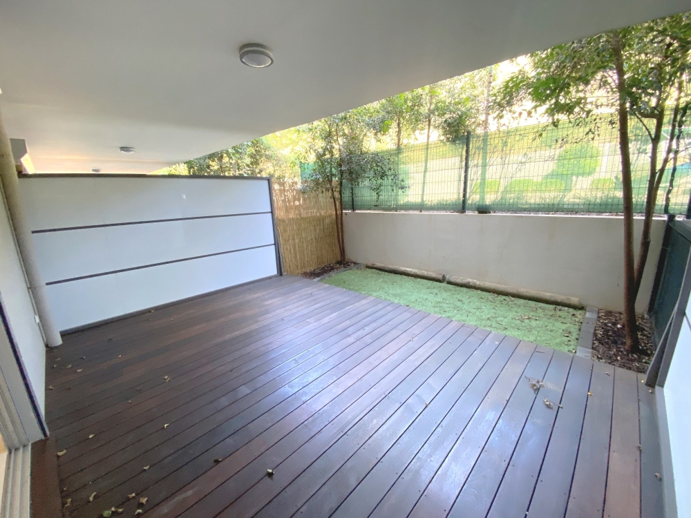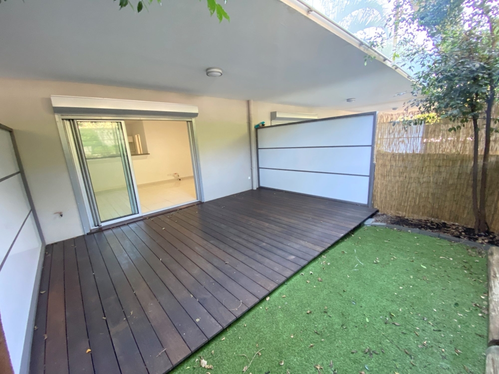 Situé dans un quartier très calme, il comprend un séjour avec cuisine équipée donnant sur une grande terrasse en deck couverte avec un jardinet.