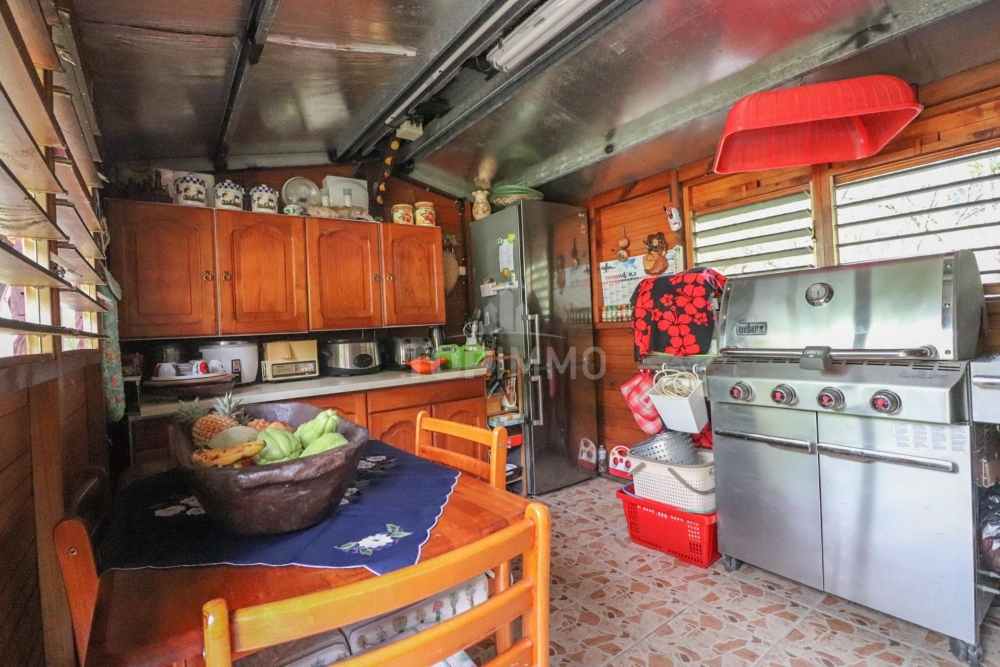 - Une cuisine extérieure aménagée, d'environ 12m², (dans une annexe en construction légère avec plusieurs ouvertures à la tahitienne)