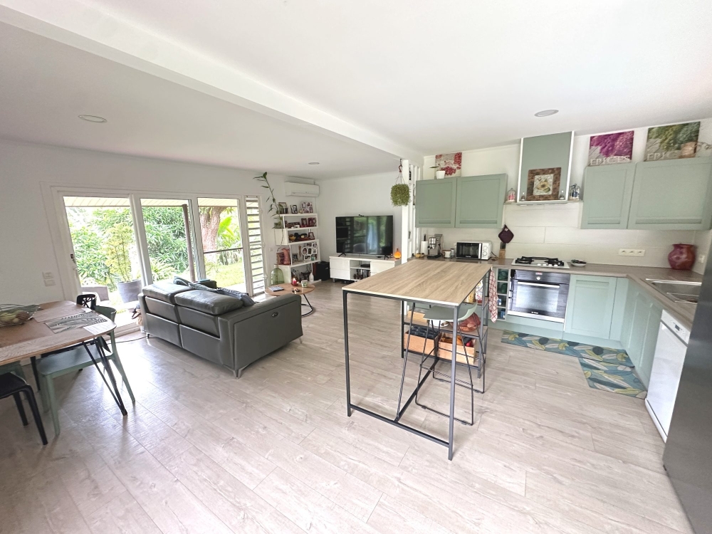 Ensemble immobilier composé de 3 biens: une maison principale F3 de 95 m², un studio indépendant attenant de 32 m² et un local professionnel de 59 m² actuellement occupé par une activité d'accueil périscolaire. Maison de construction néo-zélandaise de plain pied composée d'un séjour / cuisine de 36 m², d'une chambre parentale climatisée de 35 m² avec salle d'eau rénovée et placard, d'une chambre climatisée de 12 m² avec placard, d'une SDB rénovée, d'un WC séparé, d'une buanderie. Installation photovoltaïque. Chauffe eau solaire. Une piscine de 8 x 4m au sel. Un faré. Jardin. Studio indépendant climatisé composé d'une cuisine, une salle d'eau, un WC séparé, de nombreux rangements et une terrasse privative de 11 m².Local professionnel récent composé de 2 modules: une partie repas de 15 m² et des sanitaires et une partie avec 2 salles de 16 m² et un bureau de 4 m².L'activité d'accueil périscolaire est vendue en complément de l'immobilier. Grand parking clôturé. Le tout sur terrain de 23 ares.