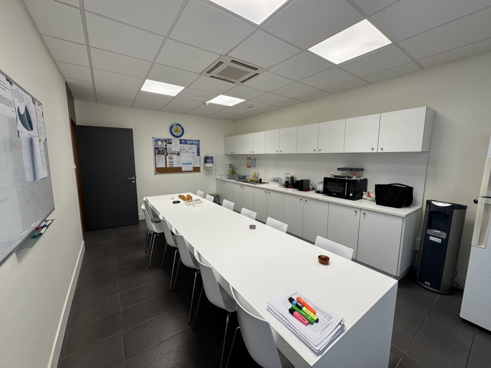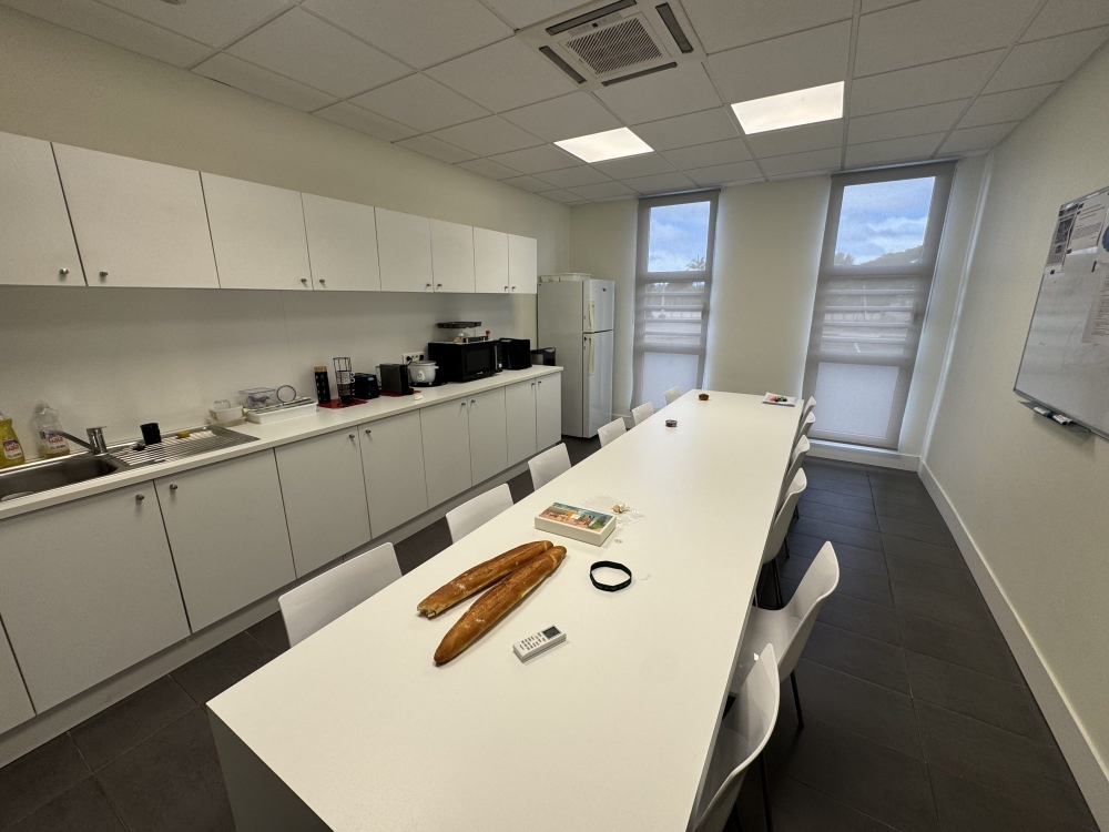 Avec une surface totale d'environ 81 m², ce local offre aujourd'hui une configuration fonctionnelle comprenant une salle de réunion, un bureau indépendant, un espace de circulation pouvant être utilisé comme coin photocopie ou rangement, une cafétéria conviviale ainsi que des sanitaires, dont un accessible aux personnes à mobilité réduite et un local technique. Cette organisation permet de répondre aux besoins de nombreux types d'activités, qu'il s'agisse de professions libérales, de services, de bureaux administratifs ou encore d'un espace partagé.