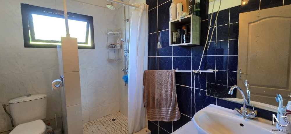 Elle se compose d'un séjour ouvert sur la cuisine, d'un dégagement qui dessert 3 chambres dont 1 suite parentale avec sde + wc, une 2ème sde, un 2ème wc et un grand bureau pouvant servir de 4ème chambre.