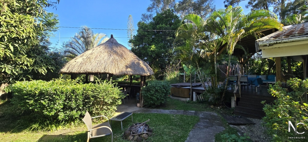Dans le jardin, sont installés un joli faré ainsi qu'une buanderie.