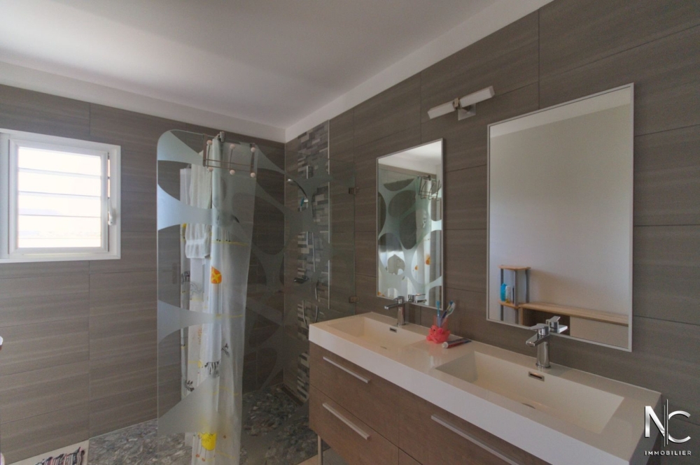 Construite en 2016, elle offre 94m² habitables comprenant : un grand séjour/cuisine équipée de plus de 45m² donnant sur une terrasse de 15 m², 3 chambres climatisées dont une attenante à la salle d'eau, une grande buanderie, des wc séparés.