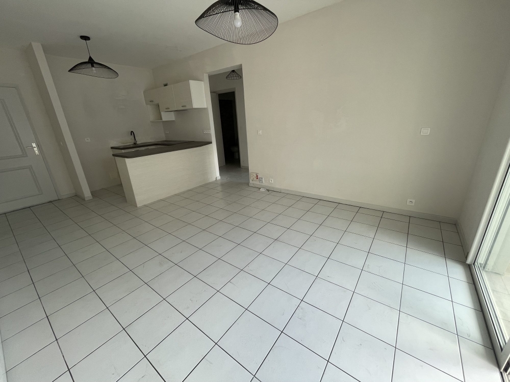 Il se compose en partie jour d'une cuisine ouverte meublée et équipée (rangements hauts et bas, plaque électrique, four, évier), donnant sur un séjour lumineux de 21.10m², sécurisé par un volet roulant manuel et ouvert sur une belle terrasse.