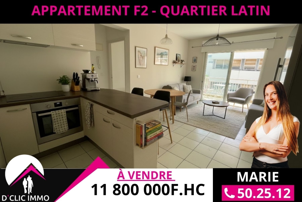 Idéalement situé, proche des commerces, des établissement scolaires et de toutes commodités au Quartier Latin, l'agence D'CLIC IMMO vous propose un spacieux appartement de type F2 de 38.60m² + 10m² de terrasse couverte + cellier + 2 parking sécurisés dont un couvert, situé au R+2 de la Résidence LE FLORE, sécurisée avec ascenseur.