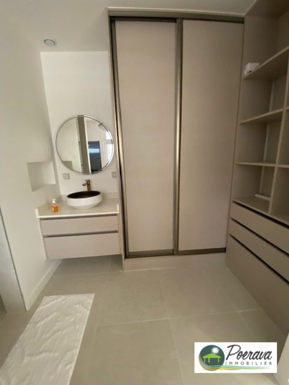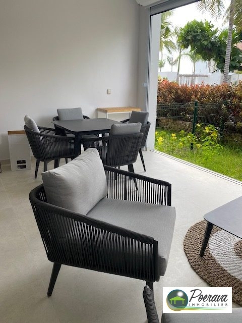EXCLUSIVITE - Résidence White Plage - Bien d'exception en rez de jardin sur la légendaire plage de Vaiava. Vous serez séduits par ce magnifique appartement aménagé avec goût et de bonne facture qui offre tout le confort et le bien être. Composé d'une cuisine ouverte sur séjour, une chambre avec son dressing, une salle d'eau à l'italienne, une spacieuse terrasse couverte avec vue sur jardin paysagé et mer. Une loggia, un cellier et deux place de parking complètent ce bien. A visiter sans tarder, contacter l'agence.