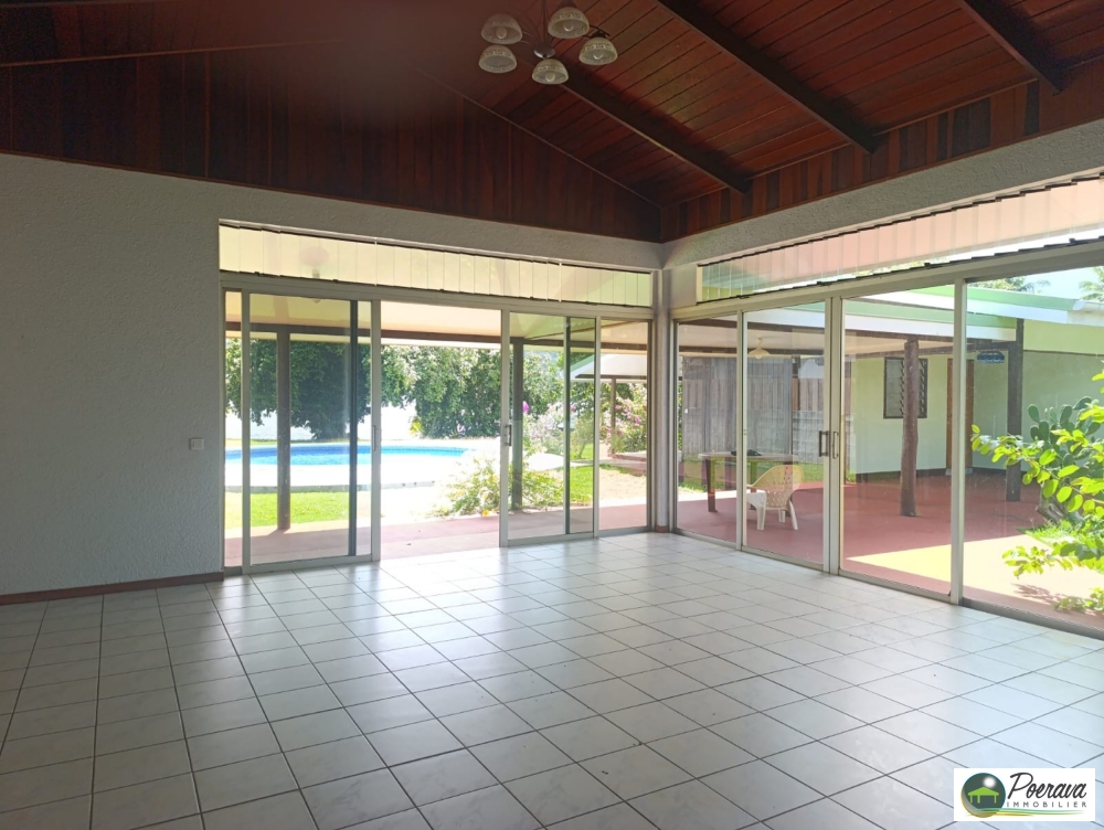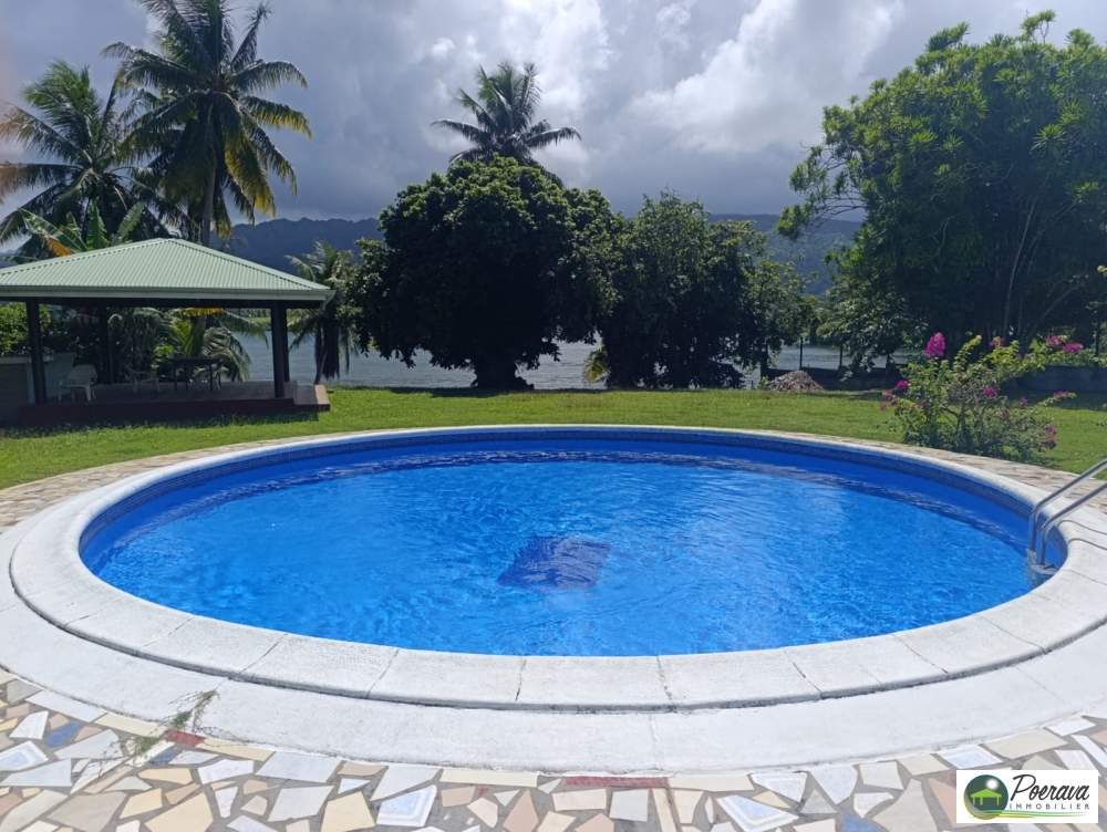 Cette propriété vous offre une jolie piscine et un Fare Pote au bord de l'eau.