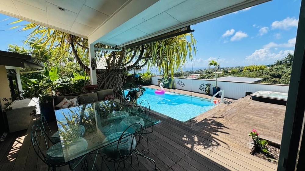 PUNAAUIA : Rare Maison F5/F6 de 150m² avec Piscine et Vue Moorea dans un lotissement prisé de Taapuna, comprenant :