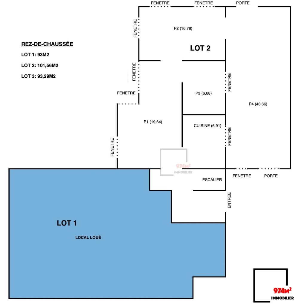 L'agence 974m2 vous propose en exclusivité un immeuble d'environ 288m2. Ce bien se compose de trois lots :