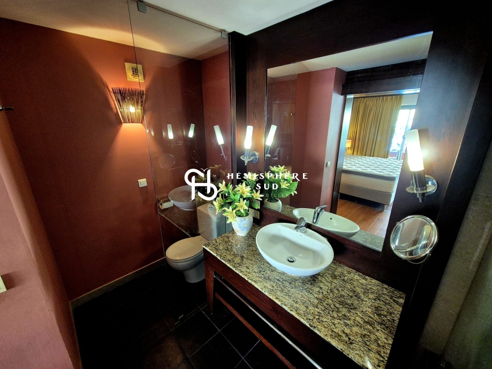 Offrant une vue imprenable, ce superbe studio entièrement meublé et climatisé de 42 m² dispose d'une belle pièce de vie, d'une cuisine, d'une terrasse, d'une grande salle de bains et d'un stationnement privatif couvert.
