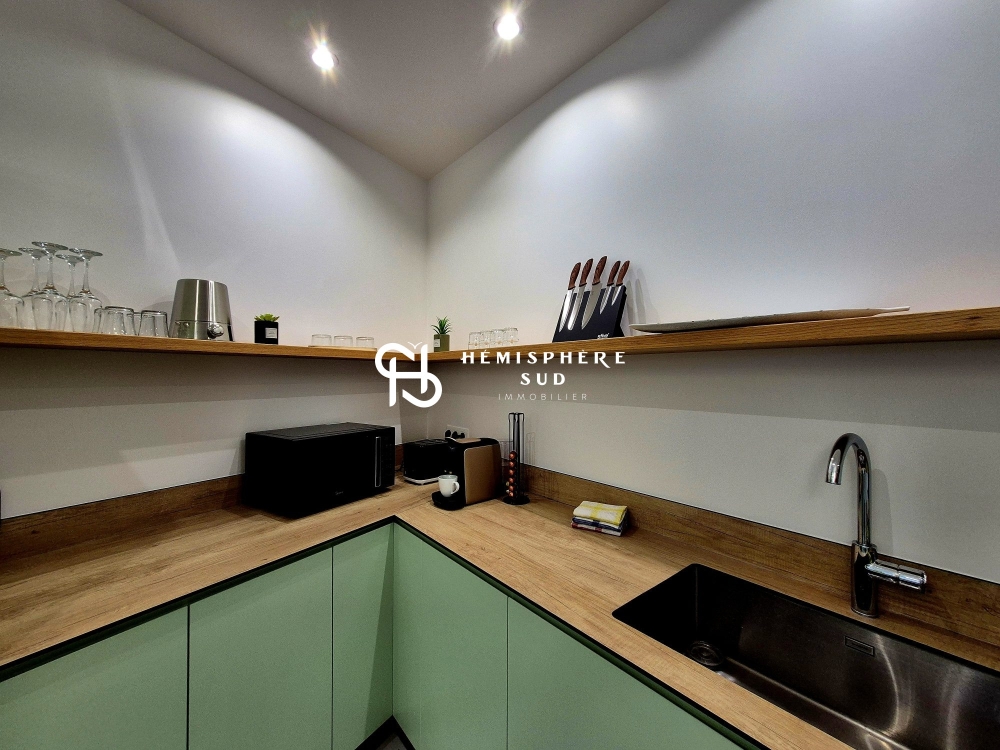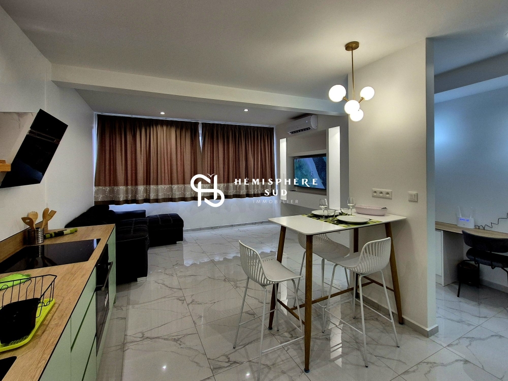 Idéal pour un pied-à-terre en centre-ville, d'une surface de 50 m², le logement est composé d'un grand salon avec cuisine ouverte, d'une chambre spacieuse avec rangements et literie de qualité.