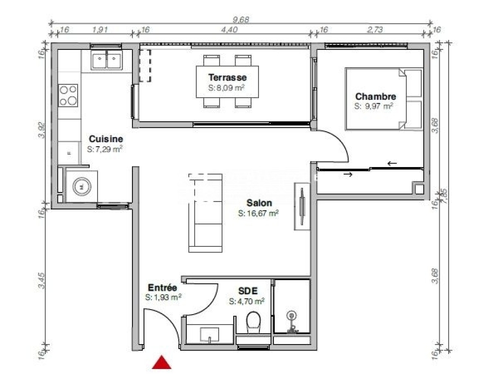 Situé au 2ème étage d'une résidence neuve, ce bel appartement F2 d'une superficie de 41 m² se compose : d'un salon avec une cuisine prolongé par une terrasse, d'une chambre, et d'une salle de bains. Deux emplacements de stationnement sont loués conjointement, dont un avec prise de recharge pour véhicule électrique.
