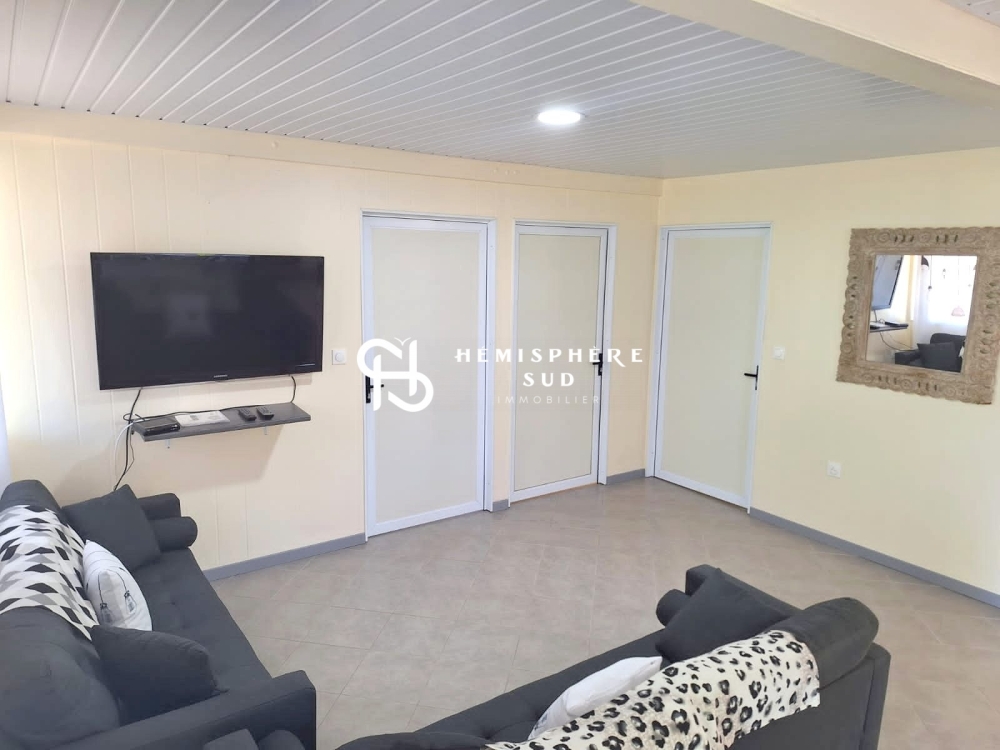 Dans un quartier calme et familial, édifiée sur une parcelle de 1 000 m², cette maison F3 de 60 m² environ se compose : d'un salon climatisé prolongé par une terrasse couverte , d'une cuisine, de deux chambres, et d'une salle de bains.