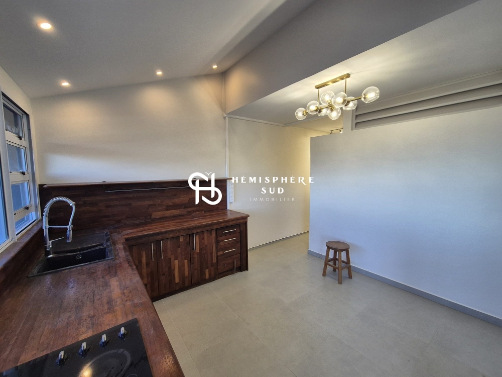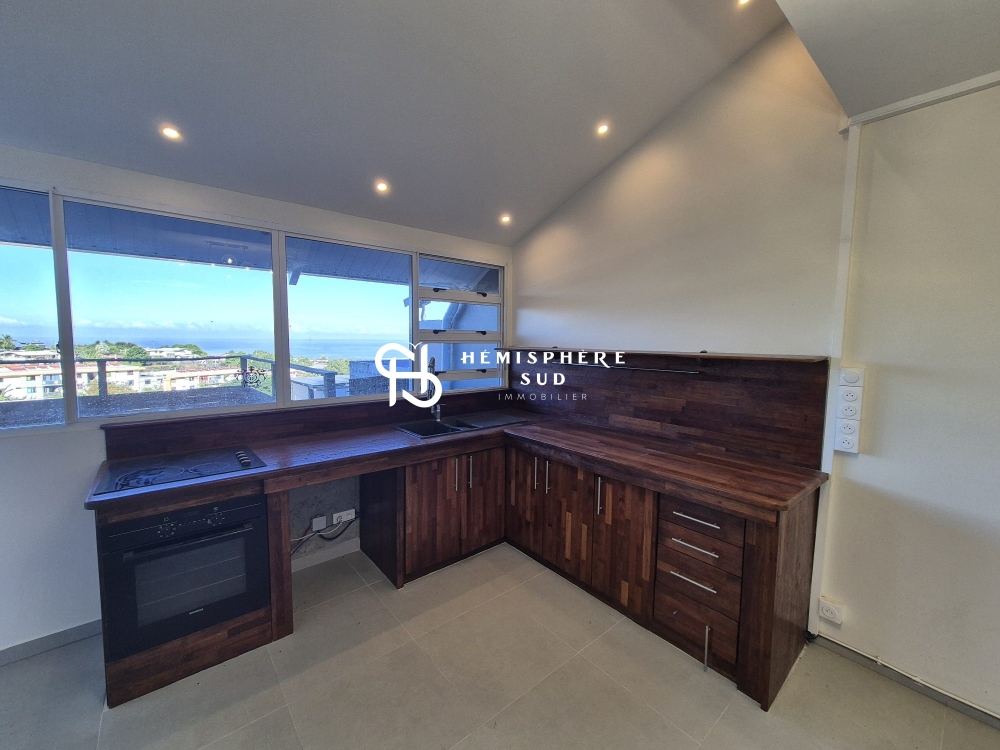 - Au RDC : d'un salon prolongé par un grand deck et sa terrasse couverte, offrant une vue imprenable sur le lagon et Moorea, d'une cuisine avec buanderie attenante, d'une salle d'eau et d'un WC séparé,