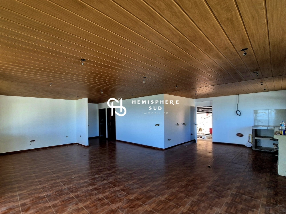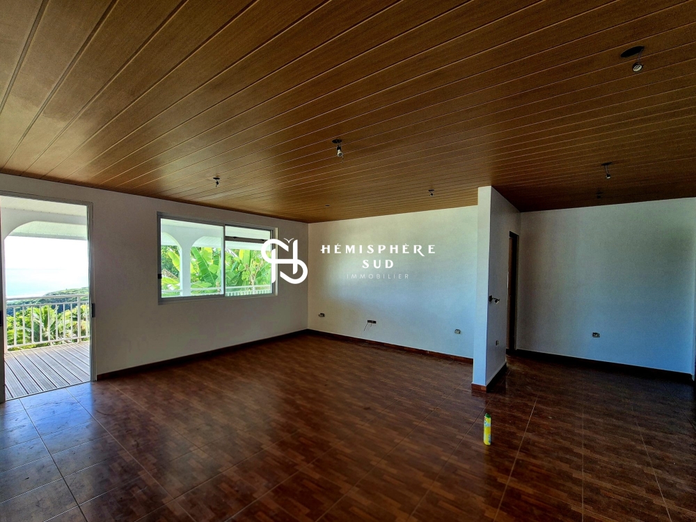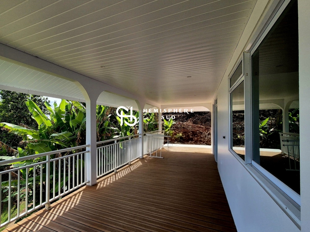 Édifiée sur un terrain de 1 800 m², elle se compose : d'un grand salon avec cuisine aménagée, de deux grandes chambres (dont une avec dressing attenant), de deux salles de bains. La grande terrasse couverte de 40 m² offre une vue imprenable sur la végétation et la mer. Enfin, une buanderie attenante et un garage constituent les annexes.
