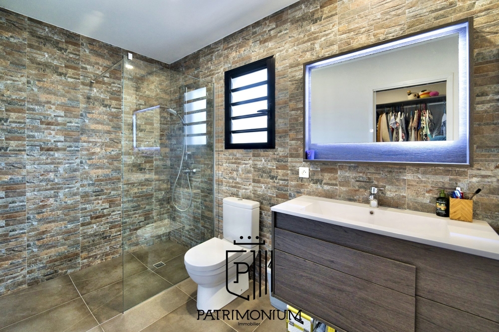 La villa propose également une suite parentale avec climatisation, volet roulant, dressing et salle d'eau privative équipée d'une douche à l'italienne et d'un wc. Vous pourrez ainsi profiter d'un espace intime et fonctionnel dédié à votre confort.