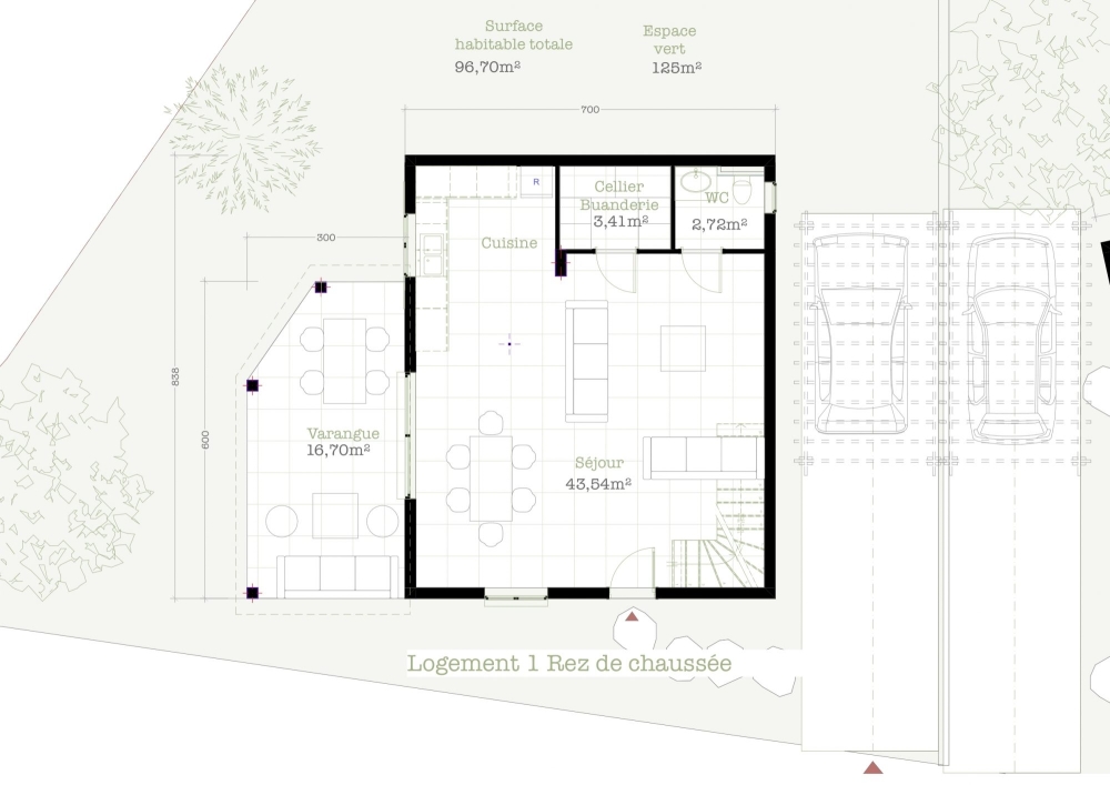 Le rez-de-chaussée accueille les espaces de vie : un séjour lumineux ouvert sur une cuisine contemporaine entièrement équipée (hotte, plaque à induction, four et lave-vaisselle), un WC indépendant, ainsi qu'un cellier attenant pour un rangement discret et efficace.Une varangue spacieuse prolonge l'intérieur vers l'extérieur et s'ouvre sur un jardin privatif, parfait pour profiter du climat et partager des moments conviviaux en toute intimité.