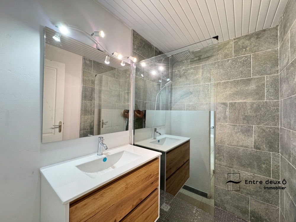 Le bien dispose d'une salle d'eau rénovée comprenant douche à l'italienne et lavabo ainsi qu'un wc