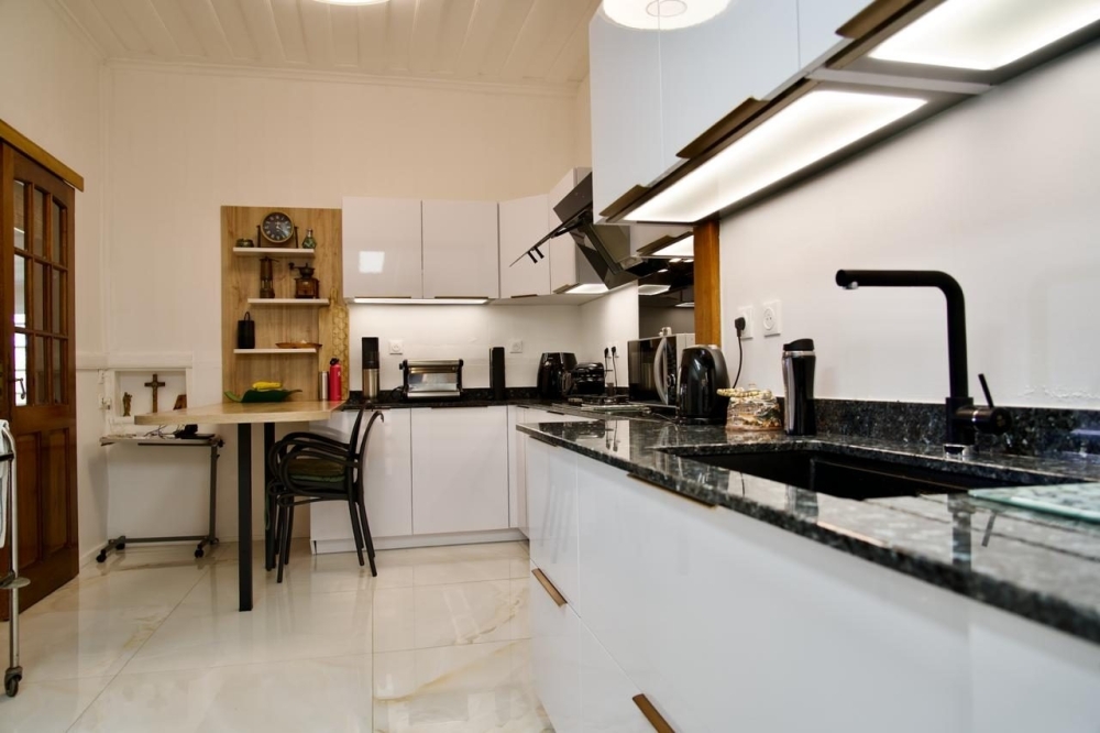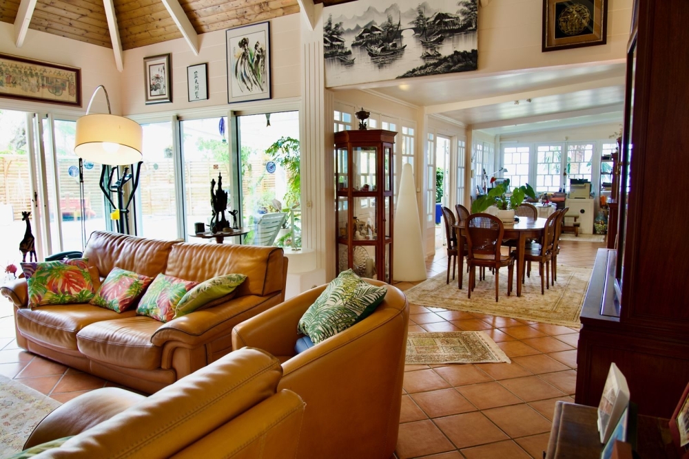La villa se compose d'un salon cathédrale, d'une cuisine entièrement neuve et équipée (vendue équipée), trois chambres, une salle de bains, une salle d'eau et un toilette séparé.