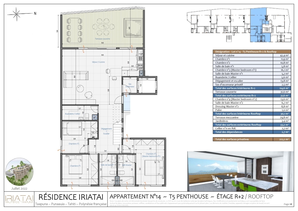 Imaginez-vous dans un cadre de vie exceptionnel, où chaque détail a été pensé pour votre confort et votre bien-être. Ce Penthouse T5 situé au dernier étage, vous offre une surface habitable de 145 m² et une surface totale de 210 m² avec 2 grandes terrasses vous garantissant un espace de vie spacieux et lumineux.
