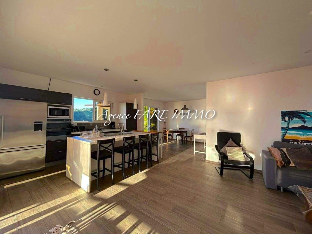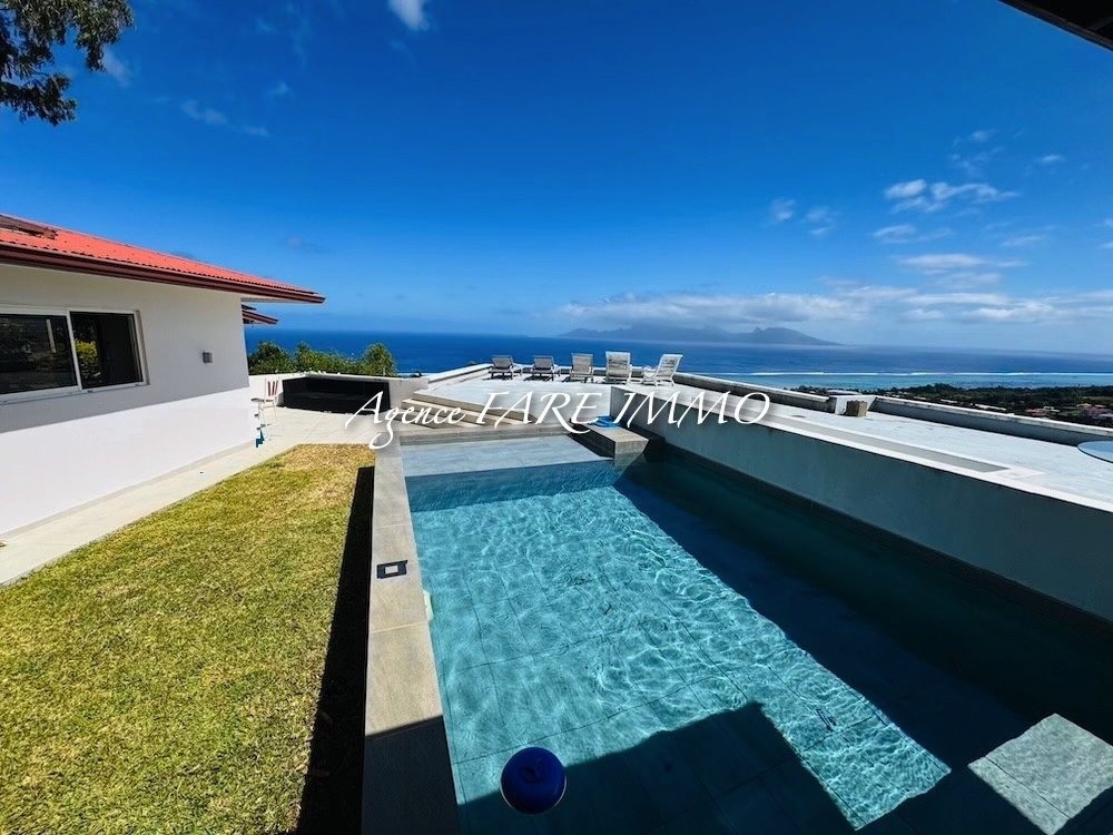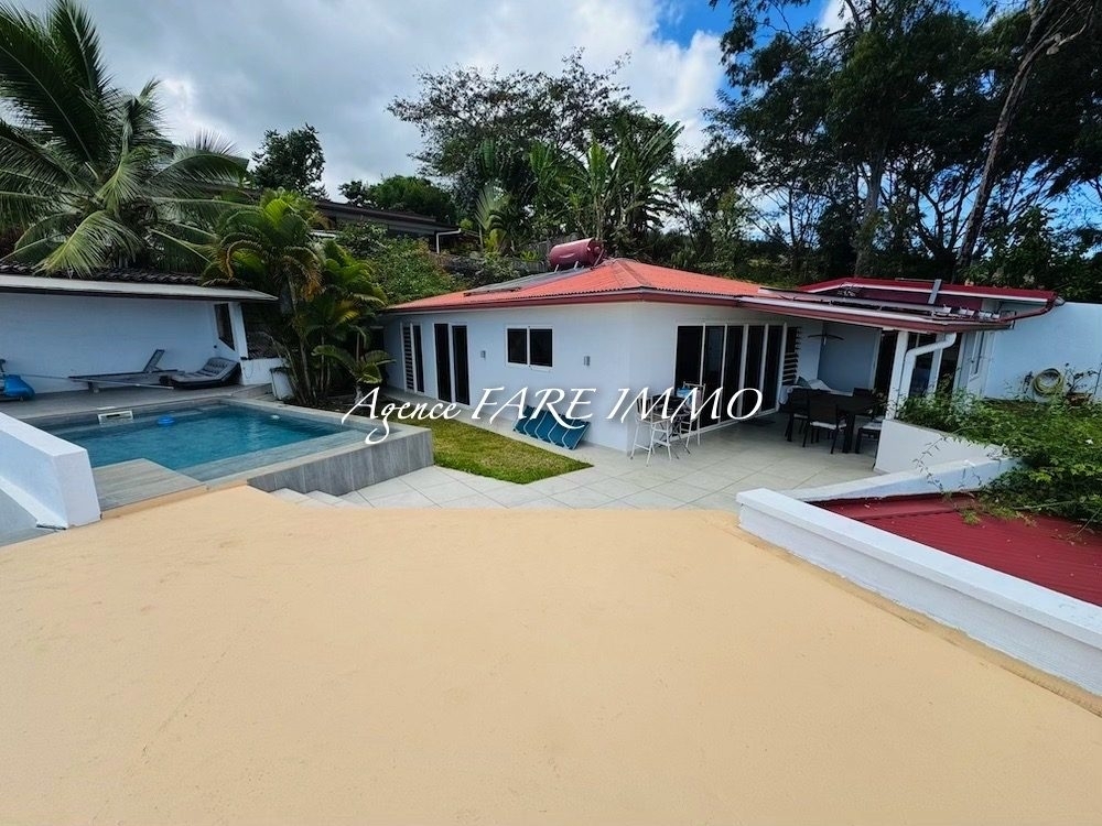 - 1 maison principale avec 3 chambres dont 2 climatisées, 2 salles d'eau, 2 wc, cuisine aménagée et équipée, salon séjour avec fibre optique, terrasse couverte avec vue à couper le souffle sur Moorea et la montagne, vaste terrasse non couverte, garage fermé pour 1 voiture