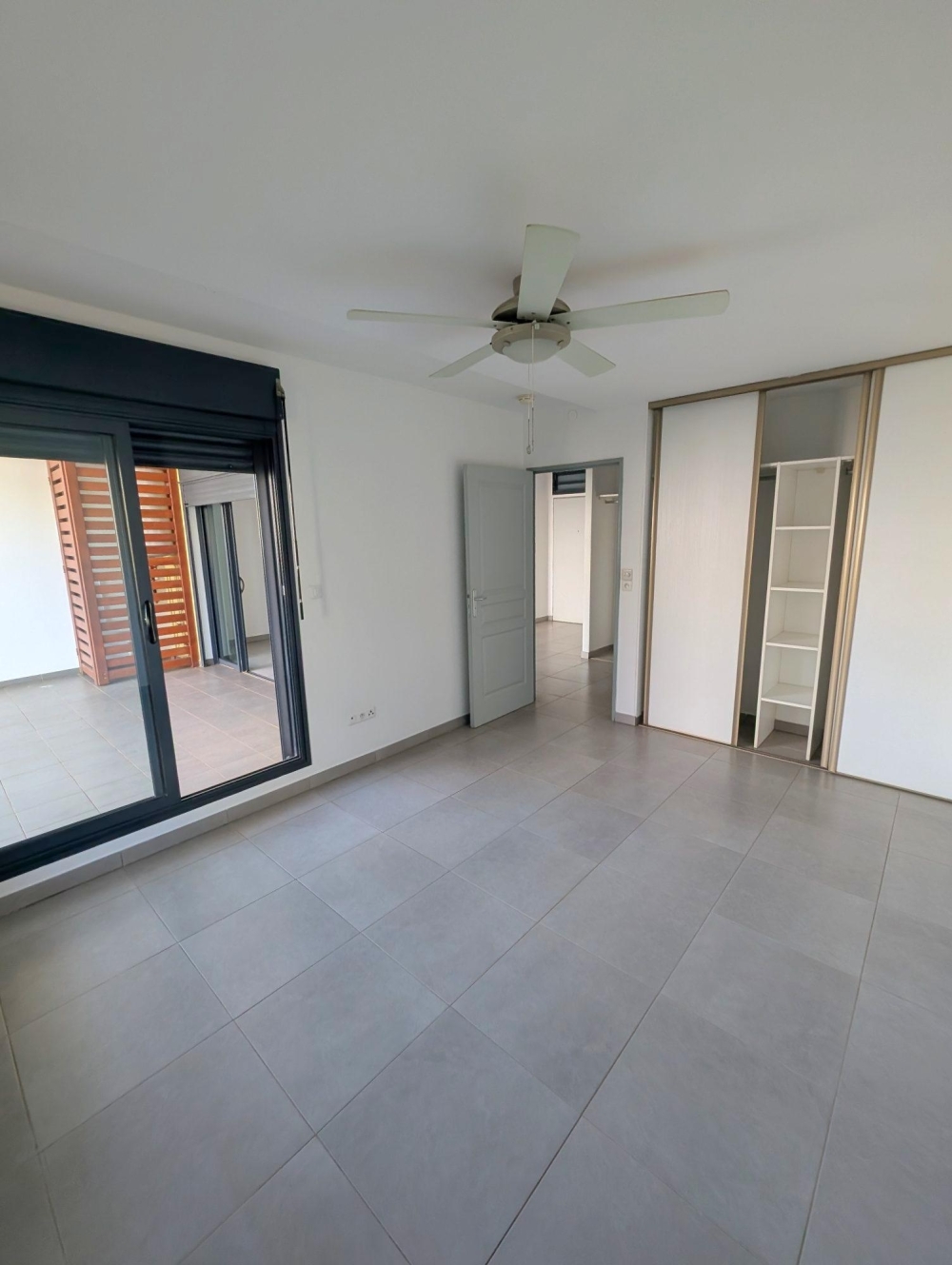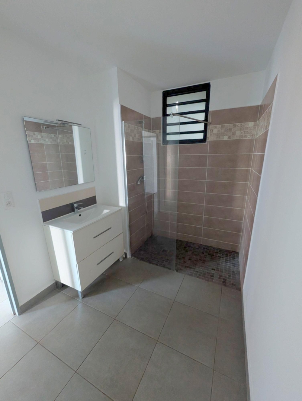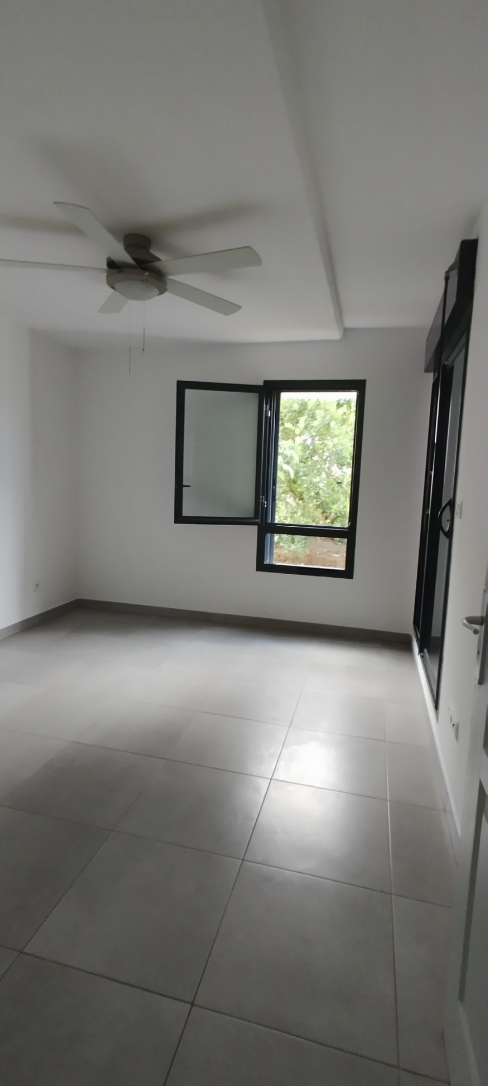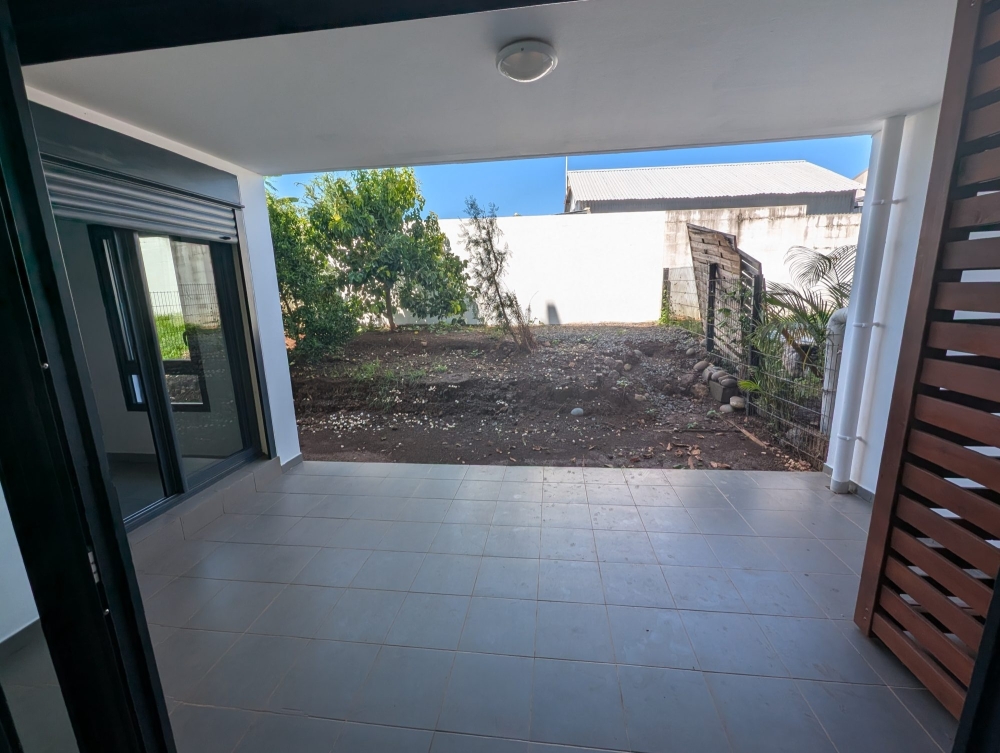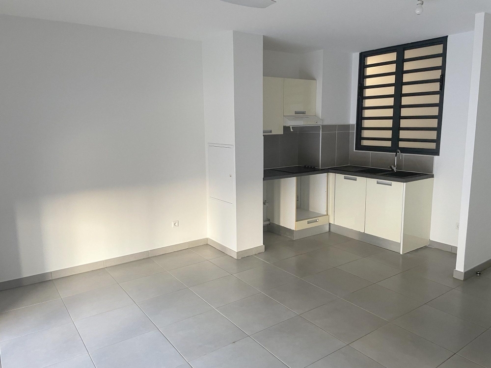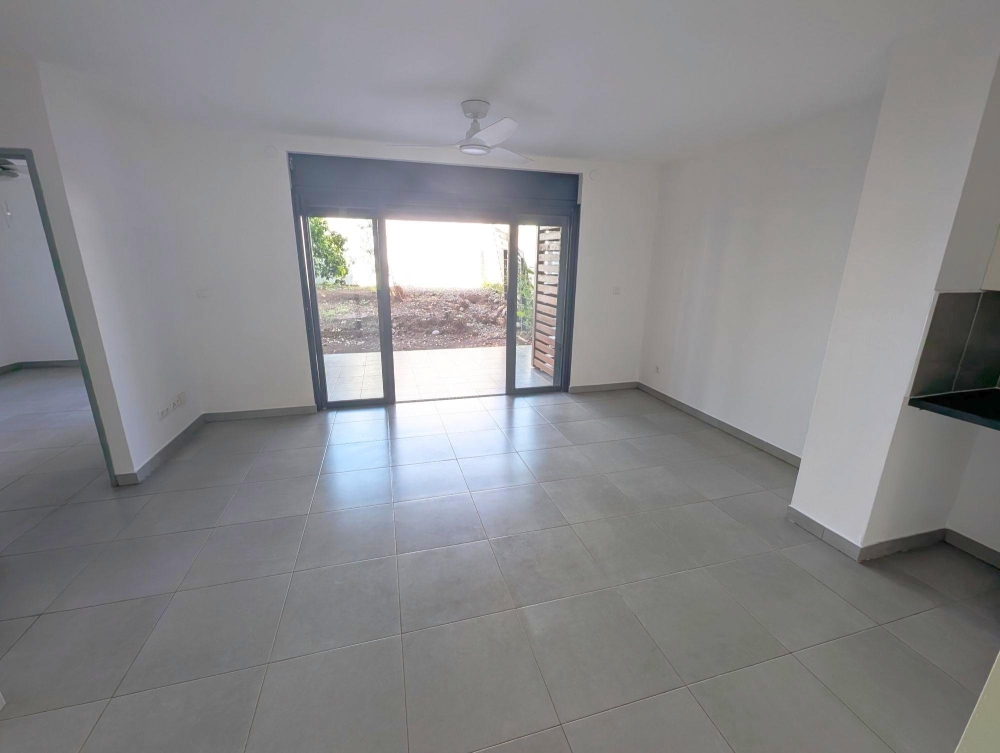 Un appartement de type F2 non meublé de superficie carrez 44.82 m2, offrant un séjour avec brasseur d'air avec cuisine ouverte équipée meubles bas et hauts plaques vitro et hotte, une chambre avec placard et brasseur d'air, une salle d'eau douche à l'italienne, un wc, séparé, une varangue de 12 m2 et un jardin de 40 m2, un parking sous sol.