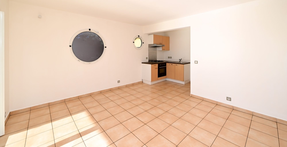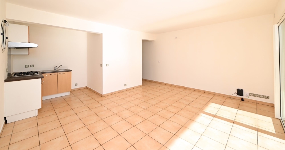 d'un espace séjour avec cuisine équipée