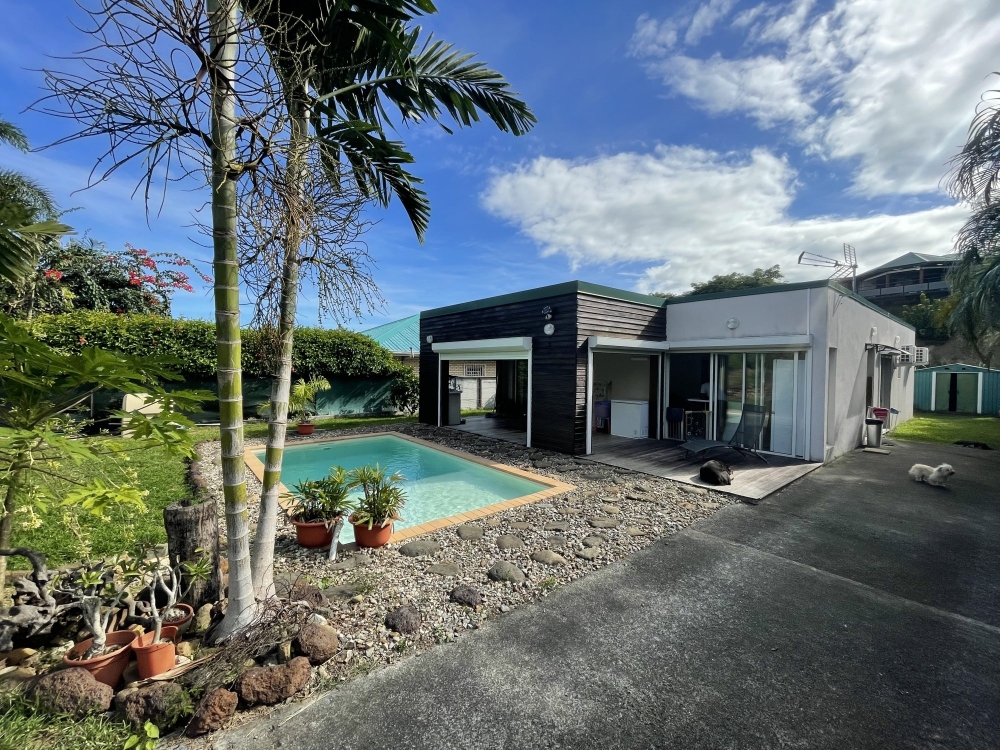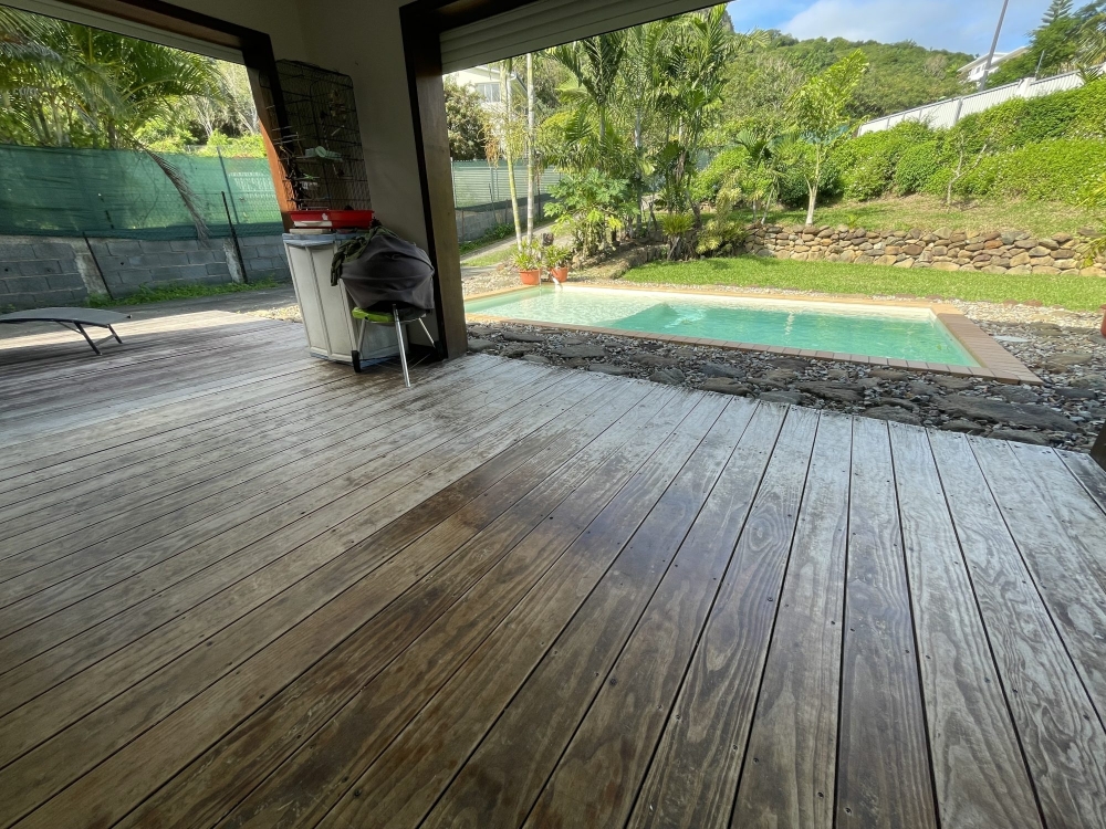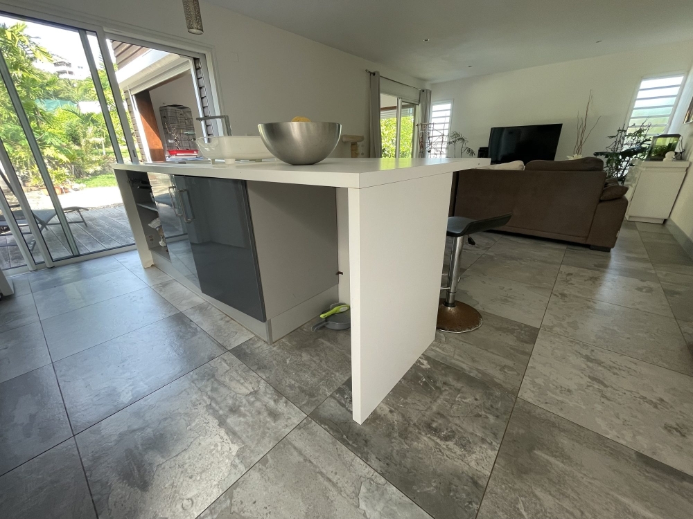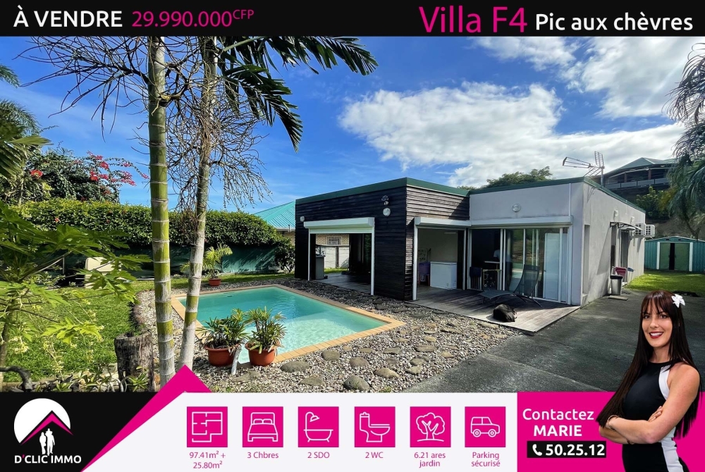 Située dans le quartier résidentiel de Pic aux Chèvres, à deux pas des commerces, du centre commercial 'LES JARDINS D'APOGOTI', du Family Park et de nombreux établissements scolaires, l'agence D'CLIC IMMO vous propose une superbe villa individuelle de type F4 de plain-pied en construction traditionnelle datant de 2015 de 123.21m² dont 25.80m² de terrasse, le tout sur un beau terrain plat de 6.21 ares sans aucun vis à vis.