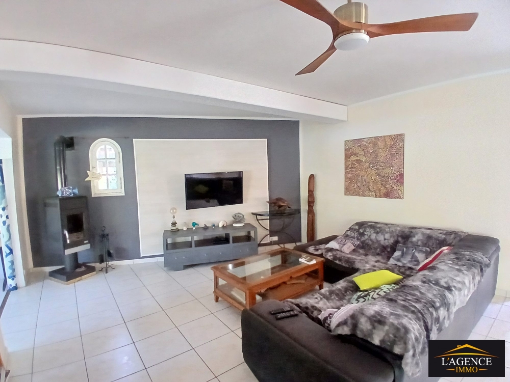 En extérieur une grande terrasse couverte d'environ 50m² avec coin piscine et une dépendance composée d'une pièce principale climatisée et d'une salle d'eau avec WC.