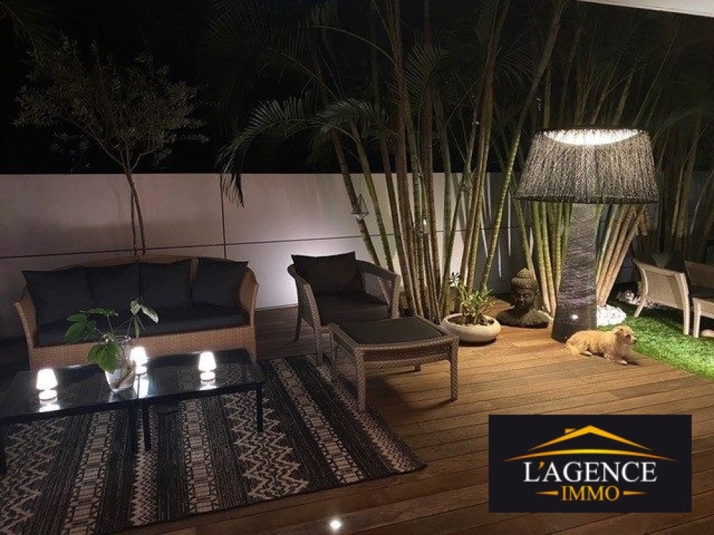 Non meublé, prestations haut de gamme : 96 m² habitables, 160 m² de terrasses couvertes et jardin arboré et clôturé, cellier 5 m².