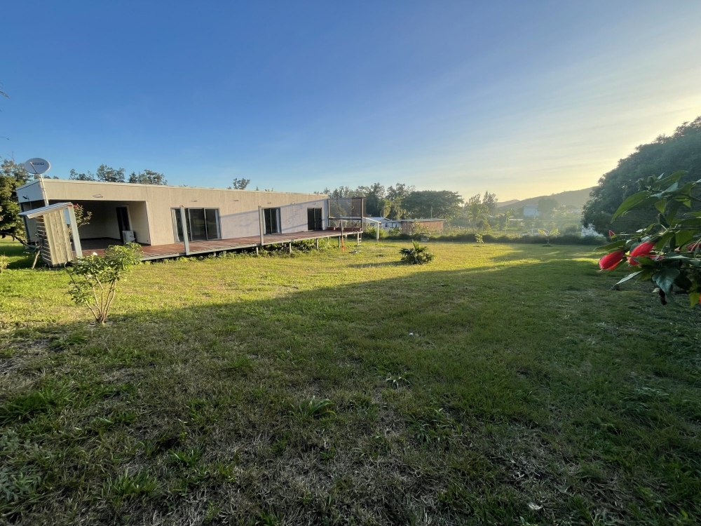 Idéalement située dans un quartier résidentiel de La Tamoa, , l'agence D'CLIC IMMO vous propose une superbe villa individuelle, en construction fibrociment sur pilotis, datant de 2019, de type F4 d'une surface de 108.80m² habitable + 110 m² de terrasses le tout sur un beau terrain plat de 30.84 ares en zone non inondable.