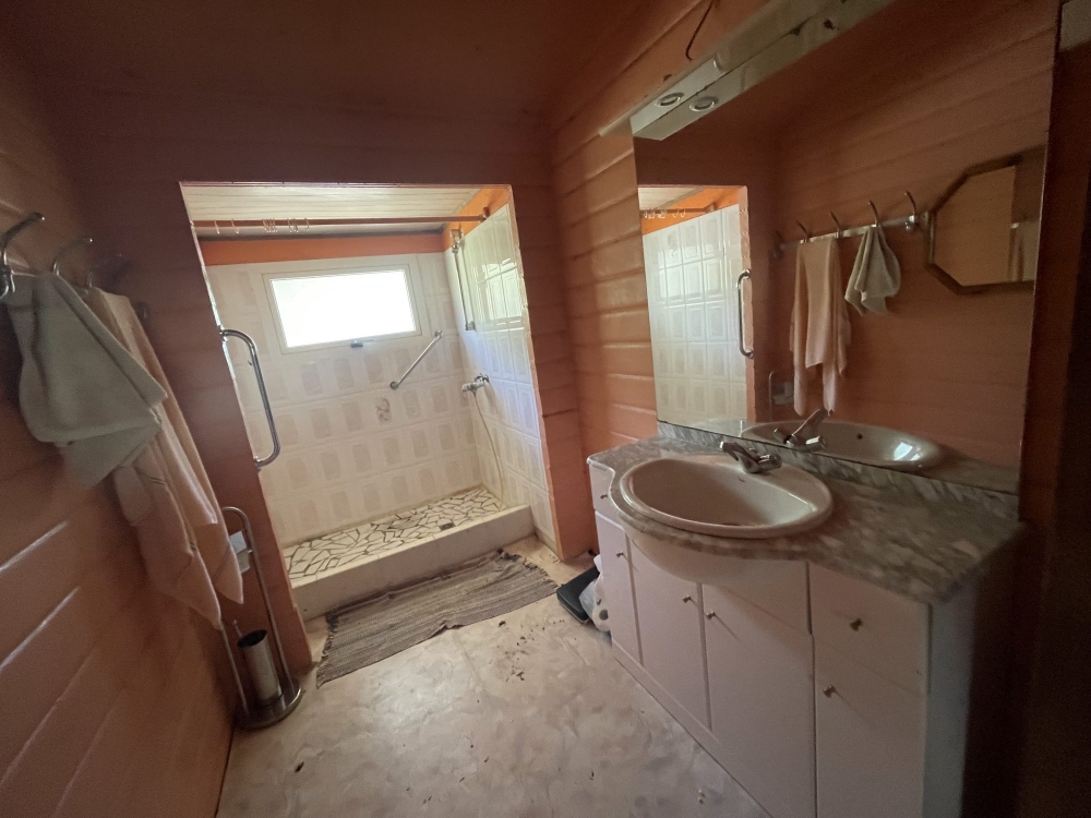 En partie jour, vous disposerez grande pièce de vie salon / salle à manger / cuisine (toutes les arrivées d'eau, évacuation ,etc sont déjà installées), le tout donnant sur la terrasse avant et sur le jardin côté piscine à l'arrière.