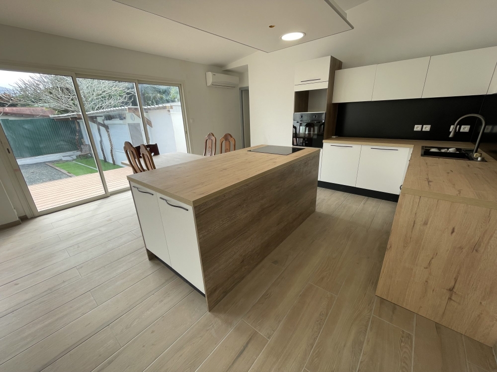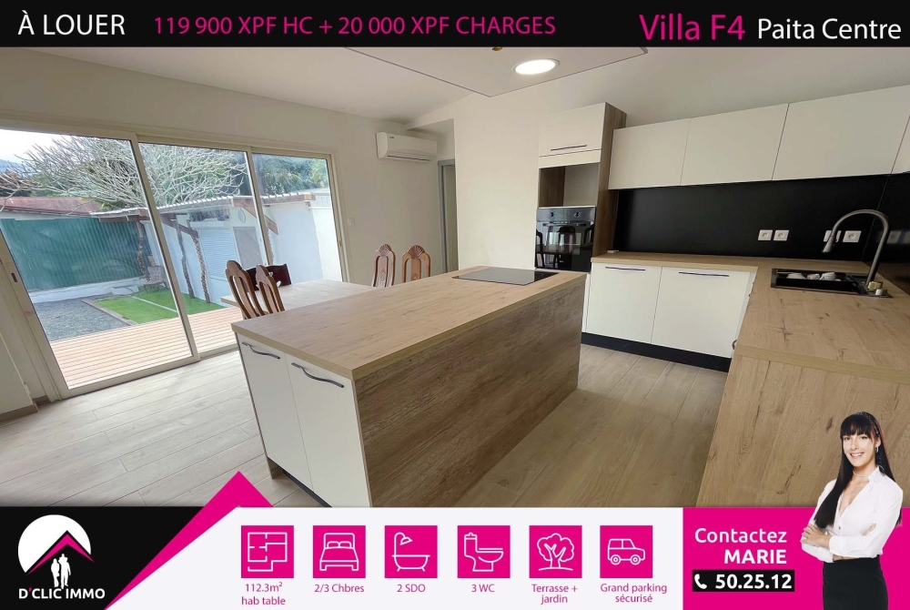 Idéalement située dans au coeur du village de Paita, dans une rue calme, à deux pas des commerces, écoles et de toutes commodités, l'agence D'CLIC IMMO vous propose en exclusivité une spacieuse villa de type F3/F4, de plain pieds, en dure, intégralement rénovée, d'une surface de 112.30m² habitable sur un beau terrain plat d'environ 300m² clôturé entièrement avec portail.