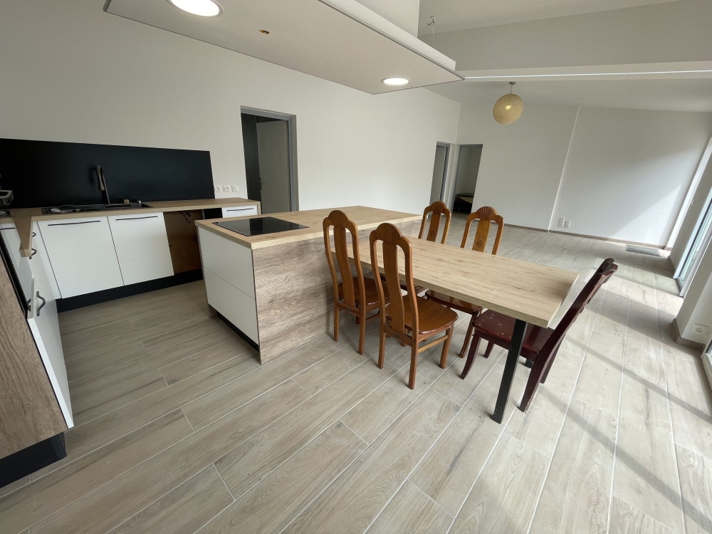 Vous disposerez partie jour d'une cuisine meublée et équipée (Plaque induction, hotte, four, ilot central, rangements hauts et bas) donnant sur un beau séjour climatisé et sécurisé par des volets roulants électriques, accès terrasse et jardin, sans vis à vis, de 45m².