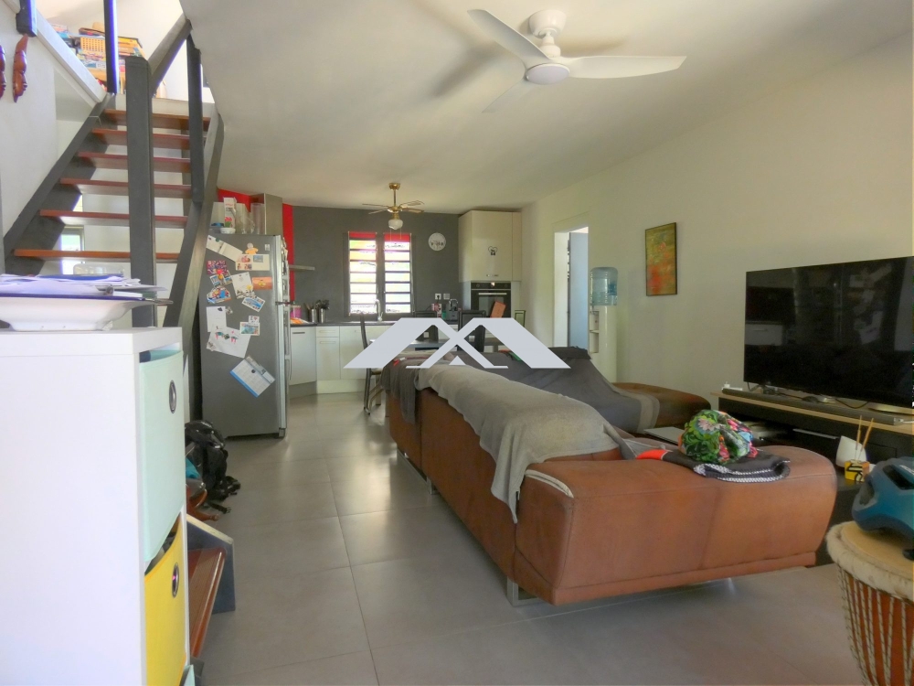 Celle-ci est composée de deux chambres au RDC d'environ 10,5 et 11,5 m²,d'une cuisine équipée ouverte sur le salon et à l'étage d'une grande pièce d'environ 36 m².