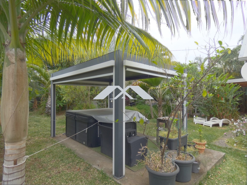 Pour finir, une pergolas bioclimatique avec stores intégrés dans laquelle se trouve un jacuzzi 6 places ainsi qu'un cabanon électrifié et équipé d'une arrivée d'eau viendra clôturer les espaces extérieurs.