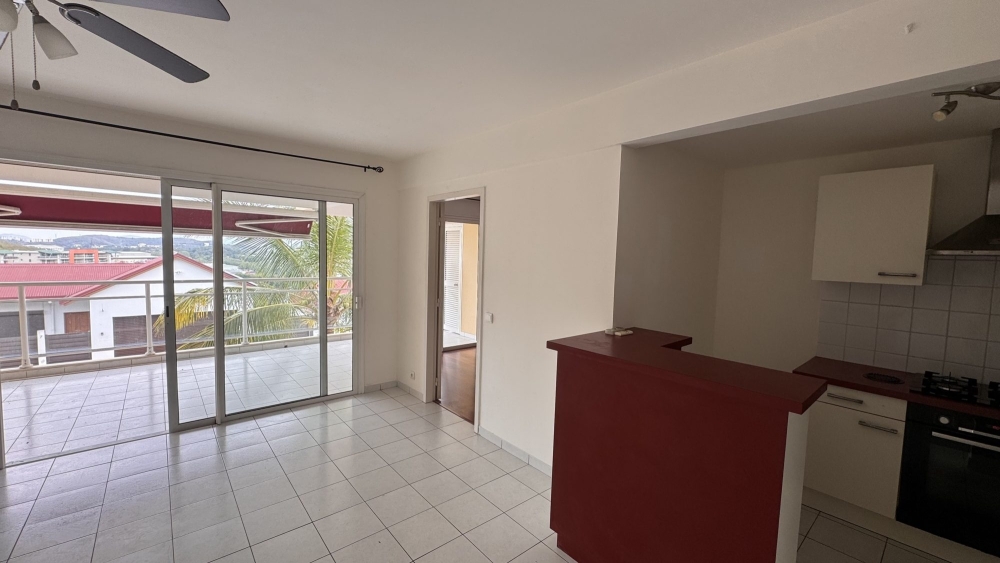 Au calme, vue dégagée, Appartement F2 au 2ème étage avec ascenseur, comprenant : cuisine équipée ouverte sur séjour, chambre climatisée avec placards et salle d'eau.